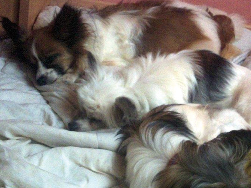 Die drei kleinen Hundeseniorinnen habe ich in 2012 im Trio im Alter von mindestens 12–16 Jahren aus dem Tierheim aufgenommen. Mit den drei „Golden Girls“ sollte mein Rüde Samuel Gesellschaft bekommen, dessen Partnerin mit ca. 15 Jahren im selben Jahr verstarb.