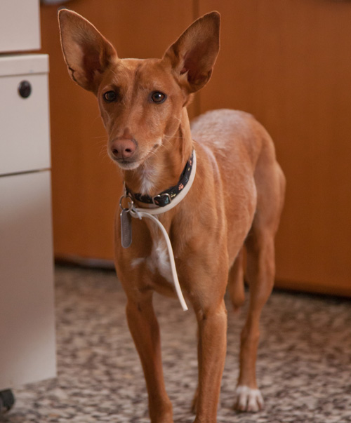 Gesundheitszustand: Athletisch und von einer überraschenden Muskulatur trotz ihrer kleinen Größe. Stark und agil wie jeder Podenco, nur ist sie gesünder, weil sie vegan lebt. Seit zwei Jahren frisst sie veganes Fressen. Sie bevorzugt, dass wir ihr das Essen kochen, aber das Trockenfutter für Katzen und Hunde (sie liebt es, dieses zu stibitzen) isst sie genauso gern.