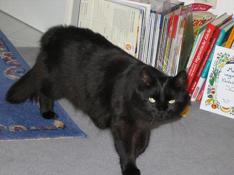 Im Jahre 2001 holte ich Kater Paulchen aus dem Tierheim und halte ihn seither als Wohnungskatze. Da er ein eher ängstliches Tier ist, kommt ihm diese Haltungsform – so mein persönlicher Eindruck – sehr entgegen. Da ich im Jahre 2001 noch nicht vegan lebte und mir nicht bekannt war, dass man Katzen auch mit rein pflanzlichem Komplettfutter ernähren kann, musste ich auf das konventionelle Dosenfutter zurückgreifen.