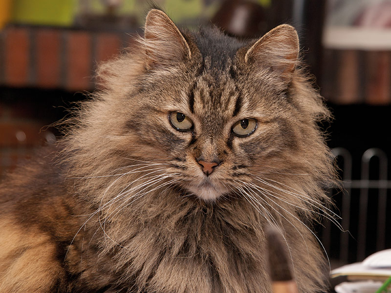 Eine gesunde, starke Katze. Sie ist etwas dick, sie liebt essen, und sie ist so gerissen, dass sie sich in die Schränke schmuggelt, die Futtersäcke öffnet und isst, anschließend lässt sie die Türen offen, damit die anderen sich bedienen können …