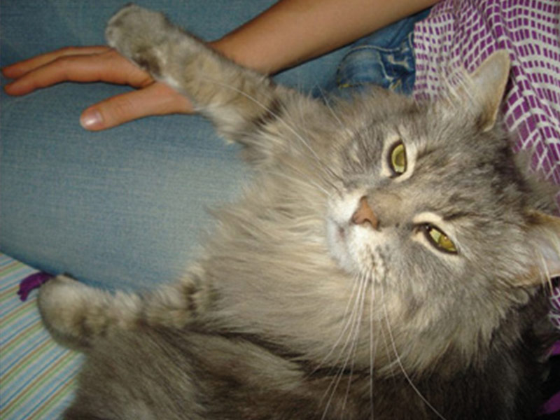 Nikolai wohnt seit dem er 4 Jahre alt ist bei uns. Er war ein Wunschkind aus dem Tierheim. Ich muss dazu sagen, dass mein Freund und ich erst kurz nachdem wir ihn bekamen, vegan geworden sind. Also war es für mich am Anfang gar keine Frage, dass ich ihm herkömmliches, auf Fleisch basierendes Katzenfutter gefüttert habe. Allerdings habe ich ihm damals mal ein Stück Hühnchen oder Shrimp angeboten, aber das wollte er gar nicht essen.