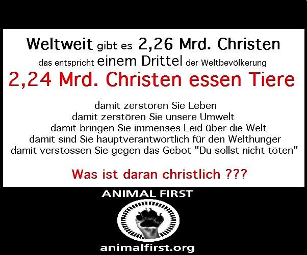 Alles dies geschieht durch den Konsum von Fleisch, Wurst, Milch, Käse, Eiern und anderen Tierprodukten. Wer diese tierlichen Produkte isst, beteiligt sich an einem System, welches Gottes Schöpfung ruiniert und zerstört.