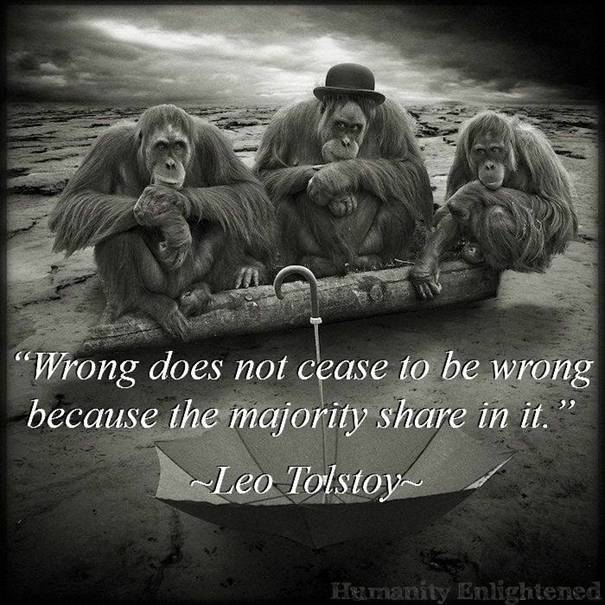 „Falsch hört nicht auf falsch zu sein, nur weil sich die Mehrheit daran beteiligt.“ – Leo Nikolajewitsch Tolstoi