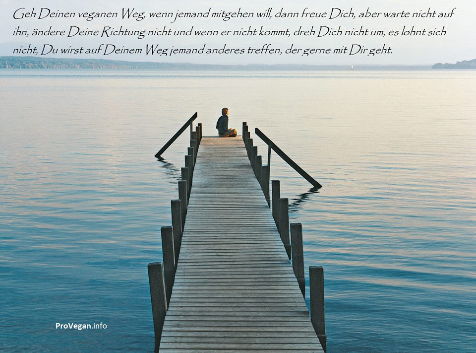 Geh Deinen veganen Weg, wenn jemand mitgehen will, dann freue Dich, aber warte nicht auf ihn, ändere Deine Richtung nicht, und wenn er nicht kommt, dreh Dich nicht um, es lohnt sich nicht, Du wirst auf Deinem Weg jemand anderes treffen, der gerne mit Dir geht.