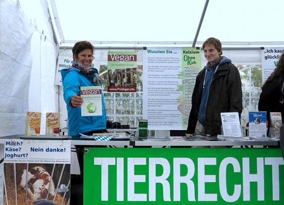Am 6.10.2013 haben Britta Becker, Svenja Nowey und Friedrich Schlehen von der Tierrechtsinitiative Augsburg einen Infostand in Markt Mering (Oberbayern) auf einem sogenannten Marktsonntag zum Thema „Konsum von Tierprodukten“ veranstaltet.