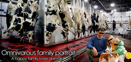 So wird der Schlachtnachwuchs in Schizophrenie der Gesellschaft frühzeitig eingeführt: Den Hund streicheln und die „Nutztiere“ quälen, ermorden und essen.