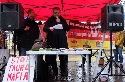 Am 13. Dezember 2014 fand in Paris eine Kundgebung zur Unterstützung von Jean-Pierre Garrigues statt. Staatlichen Stellen, die den Stierkampf fördern möchten, und die Stierkampflobby versuchen diesen führenden Aktivisten gegen den Stierkampf mit Gerichtsprozessen mundtot zu machen. Alleine im Januar erwarten ihn drei Gerichtstermine: ProVegan solidarisiert sich mit Jean-Pierre Garrigues. Neben zwei deutschen Vereinen hat auch ProVegan ein Solidaritätsschreiben verfasst, das auf der Kundgebung verlesen wurde und hier nachzulesen ist:
