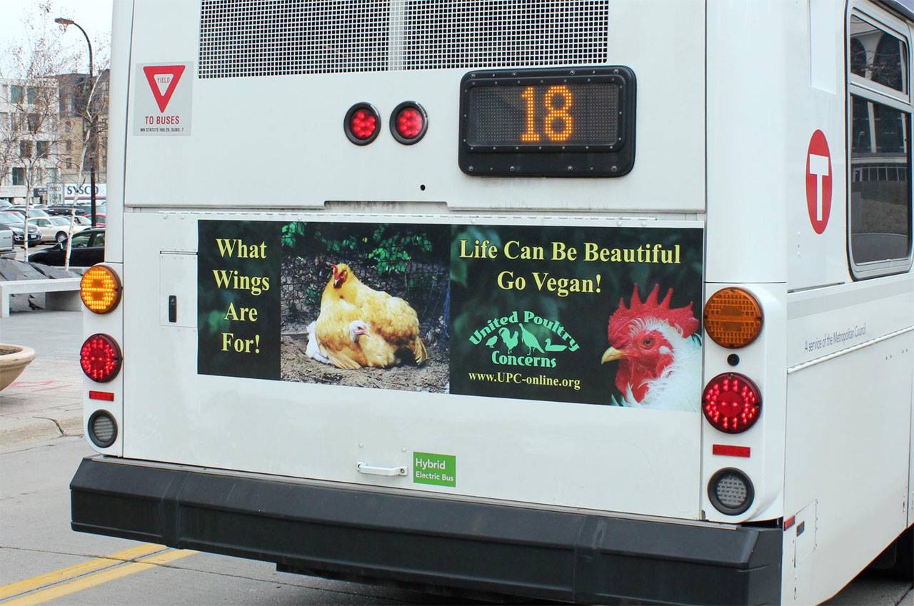 Vegane Werbung auf amerikanischen Bussen