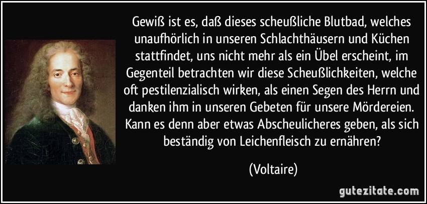„Gewiss ist es, dass dieses scheussliche Blutbad, welches unaufhörlich in unseren Schlachthäusern und Küchen stattfindet, uns nicht mehr als ein Übel erscheint, im Gegenteil betrachten wir diese Scheusslichkeiten, welche oft pestilenzialisch wirken, als einen Segen des Herrn und danken ihm in unseren Gebeten für unsere Mördereien. Kann es denn aber etwas Abscheulicheres geben, als sich beständig von Leichenfleisch zu ernähren?“