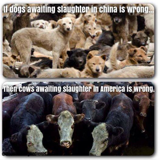 Und es ist falsch, Kühe zu schlachten und Hunde damit zu füttern.