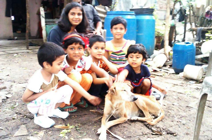 The oldest kid (girl in black) found this female dog being attacked by a pack of 8–10 dogs. With the help of her Uncle, she managed to shoo away the pack of dogs. They realised something was wrong with the dog. She immediately remembered me (a year ago, we had rescued a dog with a severe maggoted wound from their area) and asked her Uncle to call me but they could not find my number.