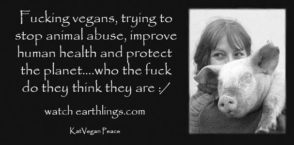 „Verdammte Veganer, versuchen den Tiermissbrauch zu beenden, die Gesundheit der Menschen zu verbessern und den Planeten zu schützen....was zum Teufel denken die, wer sie sind...“