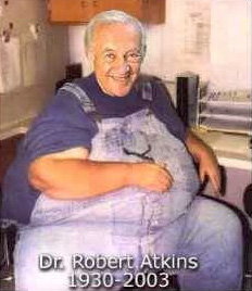 Hinweis zum Bild: Es ist völlig unwichtig, ob das Bild von Atkins eine Fotomontage von 'A Simple Healthy Life' ist oder nicht. Fest steht, dass Atkins in seinen letzten Jahren zunehmend verfettete, an Bluthochdruck und mehreren Herzattacken litt, während er gleichzeitig den Menschen eine gesundheitsschädliche Diät verkaufte, die Ihnen Schlankheit, ein gesundes Herz und die Wiederherstellung eines normalen Blutdrucks versprach. Dass vorwiegend Fotos vom normalgewichtigen Atkins in jüngeren Jahren existieren und sich Atkins in den letzten Jahren nicht gerne mit Übergewicht in der Öffentlichkeit zeigte und fotografieren ließ, ist klar. Es wäre geschäftsschädigend gewesen.
