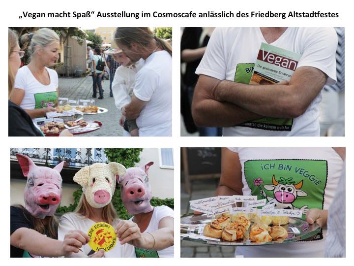 Aktion in Friedberg bei Augsburg – Cosmoscafe „Vegan macht Spaß“ mit Ausstellung, Videopräsentation („Brot für die Welt...“) und Verteilung von veganen Köstlichkeiten sowie der Infobroschüre PROVEGAN von Dr. Ernst Walter Henrich
