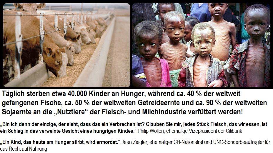 Täglich muss man sich neu entscheiden, ob man auf der Seite der Peiniger oder der Gepeinigten steht. Stehen Sie für den Veganismus, die Tiere und die Hungernden ein und verbreiten Sie mutig die Informationen über die Bedeutung des Veganismus: http://www.provegan.info/fileadmin/img/pdf/broschuere-vegan.pdf