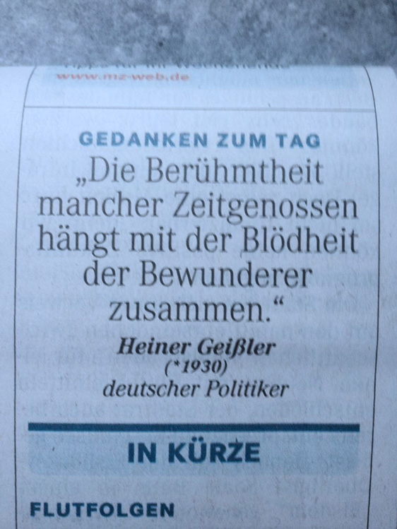 Fazit: Diejenigen, die sich altruistisch für Menschen und Tiere einsetzen, dürfen auf keine Berühmtheit hoffen, wohl aber diejenigen, die aus eigennützigen Motiven dem Geld nachstreben und durch die Medien einen gewissen Bekanntheitsgrad erlangen. Aber wie sollte es auch anders in einer Gesellschaft sein, in der es an Empathie und Intelligenz mangelt?