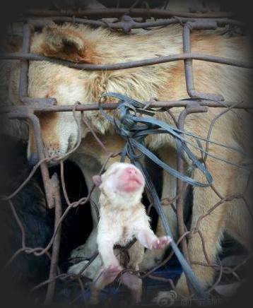 geboren auf dem Weg ins Schlachthaus. Das Fleisch landet im Kochtopf und irgendwer irgendwo hat den Pelz der Hundemama am Kragen einer Kapuze. Könnt Ihr im nächsten Winter Pelze an den Kapuzen ansehen, ohne an solche Bilder zu denken? Informiert Eure Freunde und Bekannten und erzählt Ihnen die Wahrheit!
