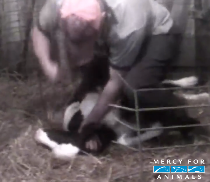 Dieses Foto stammt von einer versteckten Kamera auf einer Milchfarm und zeigt, wie ein Baby-Kalb von einem Monster wiederholt mit der Faust ins Gesicht geschlagen wurde. Unzählige Filmdokumente beweisen, dass die grausamsten Tierquälereien in Tierfabriken und Schlachthöfen die Regel sind. Das ist Ihre Milch, Ihre Eiscreme, Ihr Joghurt und Ihr Käse. Treffen Sie eine mitfühlende Entscheidung und beenden Sie den Konsum von Milchprodukten für immer. Hier erfahren Sie mehr: www.ProVegan.info