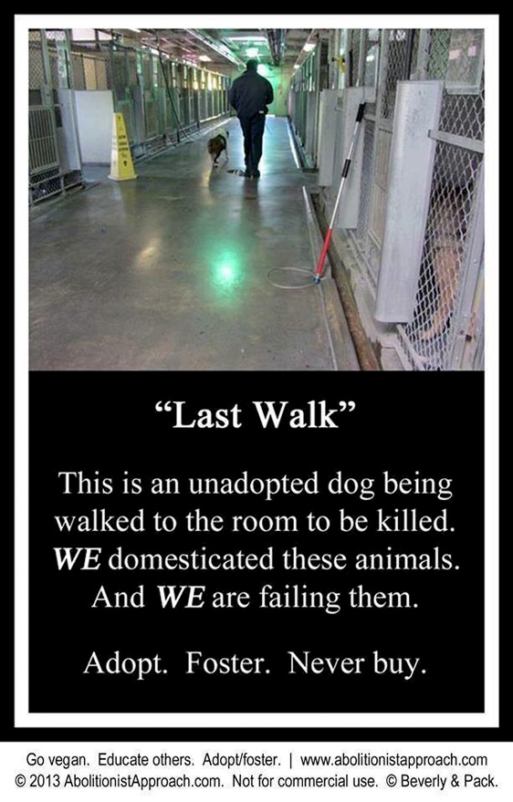 Ein Hund, den niemand adoptiert hat, auf seinem letzten Weg in den Todesraum, wo er ermordet wird.