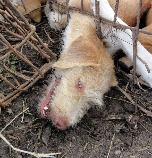 Diesem Hund in Asien ergeht es so, wie Rindern, Kälbern, Hühnern, Küken, Schweinen und Ferkeln in Europa und Amerika, die wegen des Genusses von Fleisch, Milchprodukten, Eiern und wegen der Fütterns von Fleisch an Haustiere ausgebeutet, versklavt und hingerichtet werden.