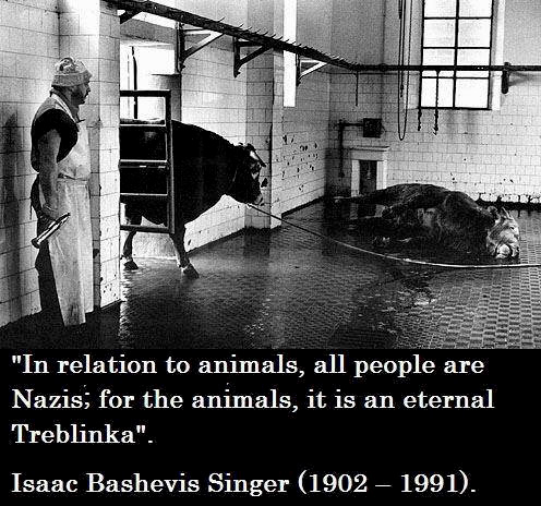 Auf den ersten Blick klingen diese Argumente sogar vernünftig, tolerant und klug, weil wir alle so fest in der Normalität des Verbrechens gegen Tiere gefangen sind, dass uns ein kleiner scheinbarer Tick weniger Gewalt gegen Tiere schon als eine heroische lobenswerte Leistung erscheint. Aber dies ist und bleibt eine Toleranz für Verbrechen. Und wenn wir dies mit den obigen Argumenten tolerieren oder sogar loben, werden auch wir schuldig.