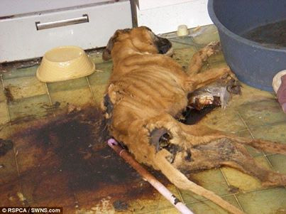 Zeitungsartikel: http://www.dailymail.co.uk/news/article-2584432/Pet-dog-starved-death-horrific-conditions-trainee-lawyer-specialising-medical-negligence-locked-animal-kitchen-week-went-work.html