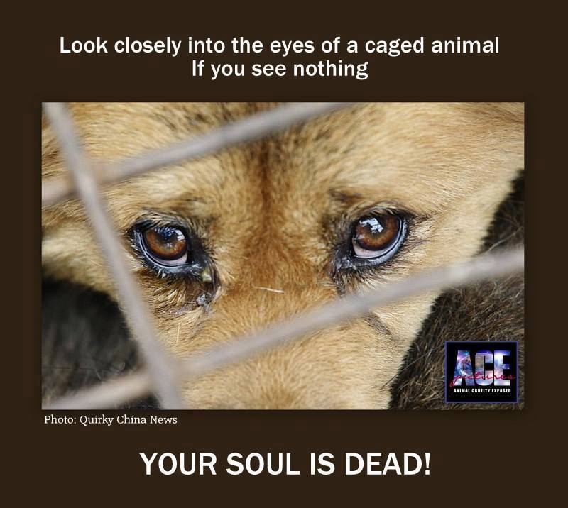 Wer Pelz, Fleisch, Milchprodukte, Eier oder Fisch kauft und das Leid der Tiere kennt und es trotzdem tut, dessen Seele ist tot!