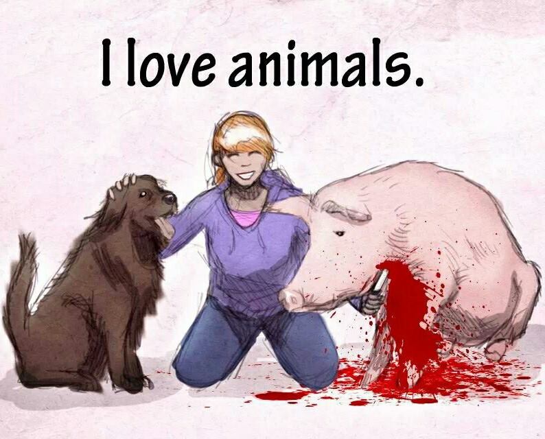 „Tierschutz im bürgerlichen Staat ist schliesslich klar definiert. Wer mit der einen Hand seinen Hund krault und sich mit der anderen ein Schnitzel reinschiebt, entspricht dem schizophrenen Idealbild.“ (http://www.neues-deutschland.de/artikel/215884.panoptikum-politischer-possen.html)