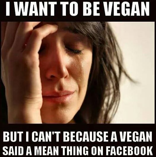 - Einfältige Veganer fallen darauf herein und posaunen überall herum, dass man mit den Omnivoren und Vegetariern keinesfalls Klartext reden dürfe, da es diese ja abschrecken könne, vegan zu werden. (Dies kommt natürlich der Bequemlichkeit und/oder der Feigheit der Kuschelveganer zugute, denn eventuellen Konfrontationen gehen sie so aus dem Weg.)