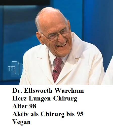 Dr. Ellsworth Wareham ist ein gutes Beispiel dafür, wie hoch die Lebensqualität auch noch im extrem hohen Alter sein kann, wenn man sich an die einfachen Hauptregeln einer gesunden veganen Ernährung hält. Denn wie bereits mehrfach von mir betont, ist nicht die Höhe des Lebensalters entscheidend, sondern in erster Linie die Lebensqualität im Alter. Denn die moderne Medizin ist zweifellos in der Lage, auch chronisch kranken und leidenden Menschen ein hohes Lebensalter zu ermöglichen. Doch was ist das für eine Lebensqualität, im Bett, im Rollstuhl, im Pflegeheim, mit Medikamenten und mit Chemotherapie vollgepumpt dahinzusiechen? Dass es anders geht, zeigt die Ernährungsforschung.