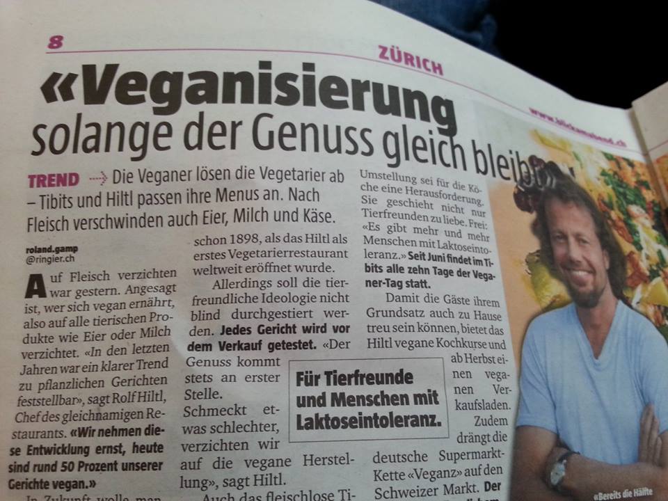 Selbst die fleischessenden Gastronomen wie Hiltl passen sich zähneknirschend dem veganen Trend an: