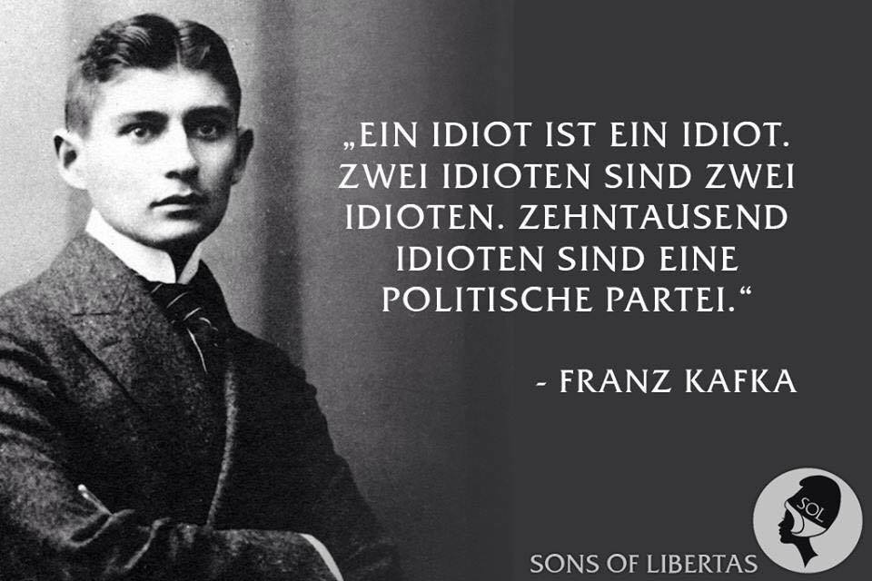 Zuerst hält man die Aussage für idiotisch. Dann denkt man nach über den Zustand unserer Gesellschaft, der Welt und wohin die politischen Parteien sie gebracht haben. Schliesslich erkennt man, wie recht Kafka hatte. Nur einige Stichworte: