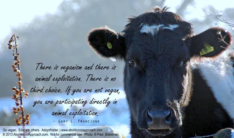 „Es gibt einerseits den Veganismus und andererseits die Tierausbeutung. Es gibt keinen dritten Weg. Wenn Sie nicht vegan leben, dann beteiligen Sie sich direkt an der Tierausbeuutung.“