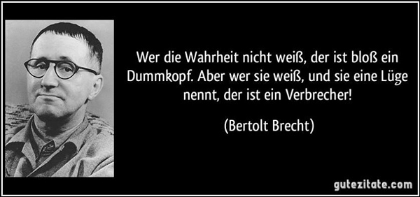 „Wer die Wahrheit nicht weiß, der ist bloß ein Dummkopf. Aber wer sie weiß und sie eine Lüge nennt, der ist ein Verbrecher.“ Bertolt Brecht