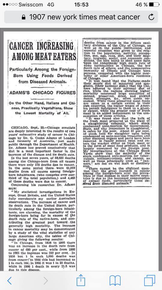 Leider interessiert das nur wenige Leute oder sie lassen sich von den Ernährungsbetrügern beschwichtigen, wie jüngst bei der WHO-Warnung vor der Krebsgefahr durch Fleisch wieder einmal eindrucksvoll gesehen.